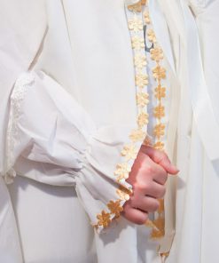 بسته کامل ترمه رنگ کرم با نوار گلدوزی شده